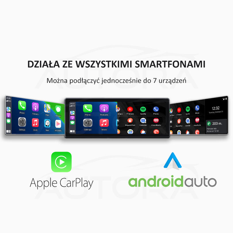 Tak, urządzenie multimedialne obsługuje zarówno Apple CarPlay, jak i Android Auto, zapewniając nowoczesne technologie w Twoim samochodzie – dla płynnej nawigacji, odtwarzania muzyki i komunikacji.